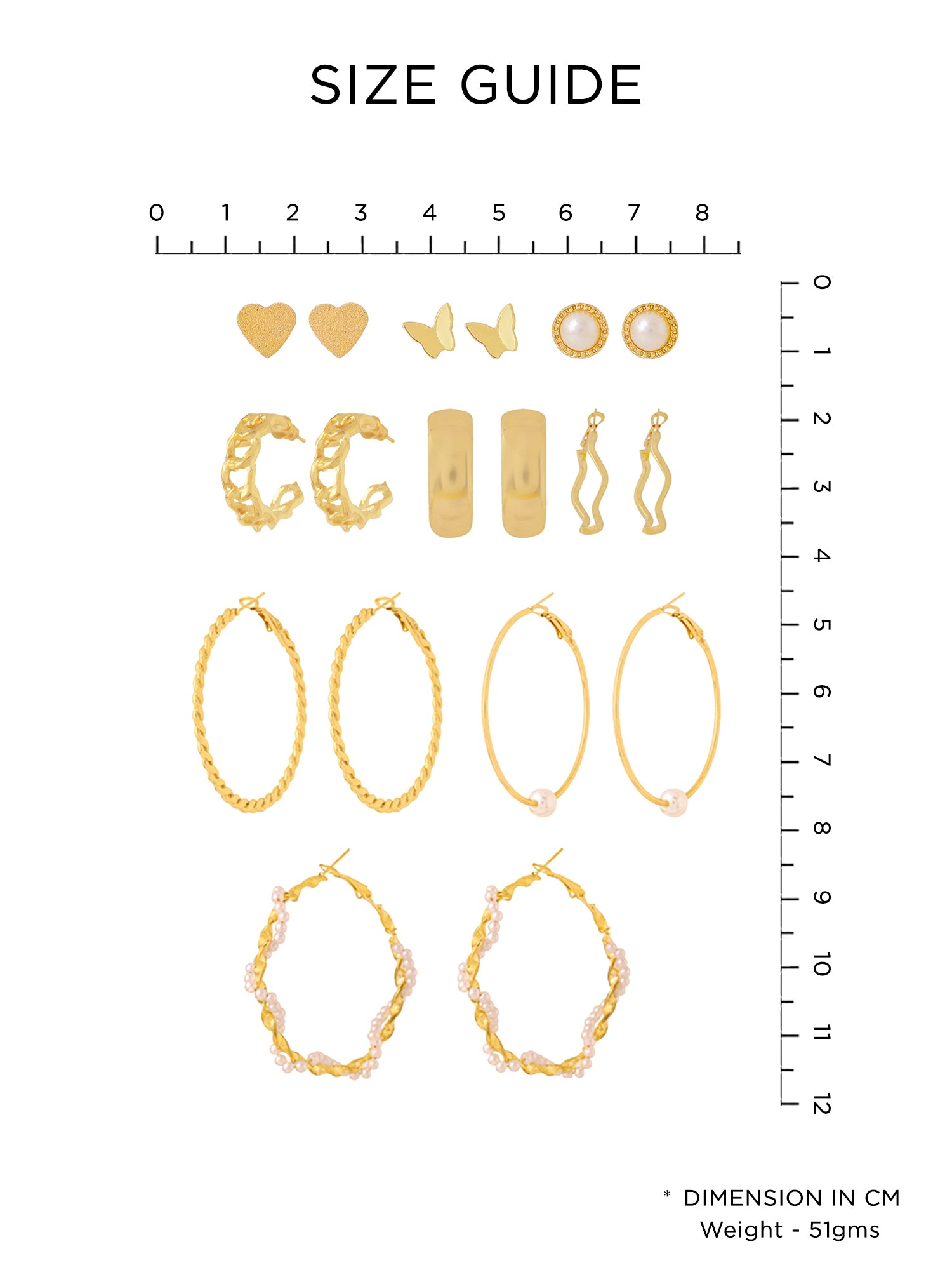 Yellow Chimes Stud Earrings for Women | Fashion Gold Earring for Girls Combo of 9 Pairs Stud Hoop Earrings Set | Big Hoops Set Women Earrings | Chic Reverie | Birthday Anniversary Gift For Girls Women