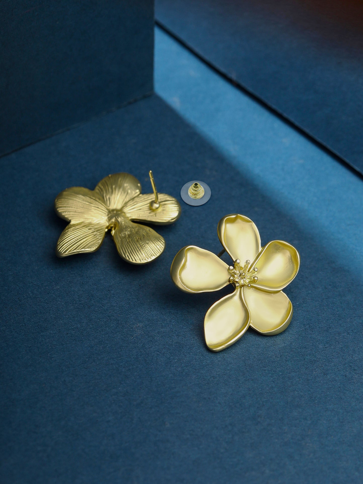 - ELEGANT DESIGN: Luxurious gold-plated floral studs elevate any outfit, perfect for any occasion. With a sturdy push-back clasp, enjoy a fabulous look and a worry-free fit. Experience elegance without the weight perfect for daily wear without sacrificing comfort.