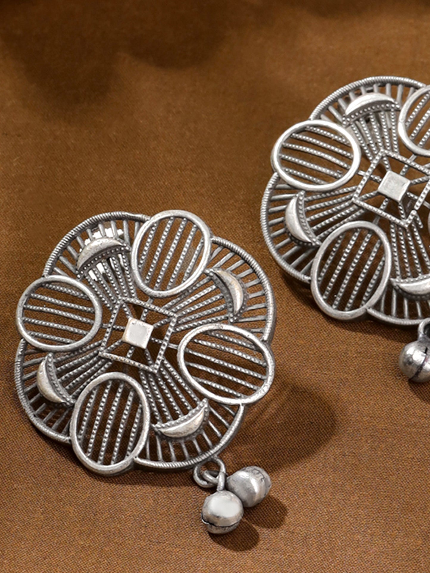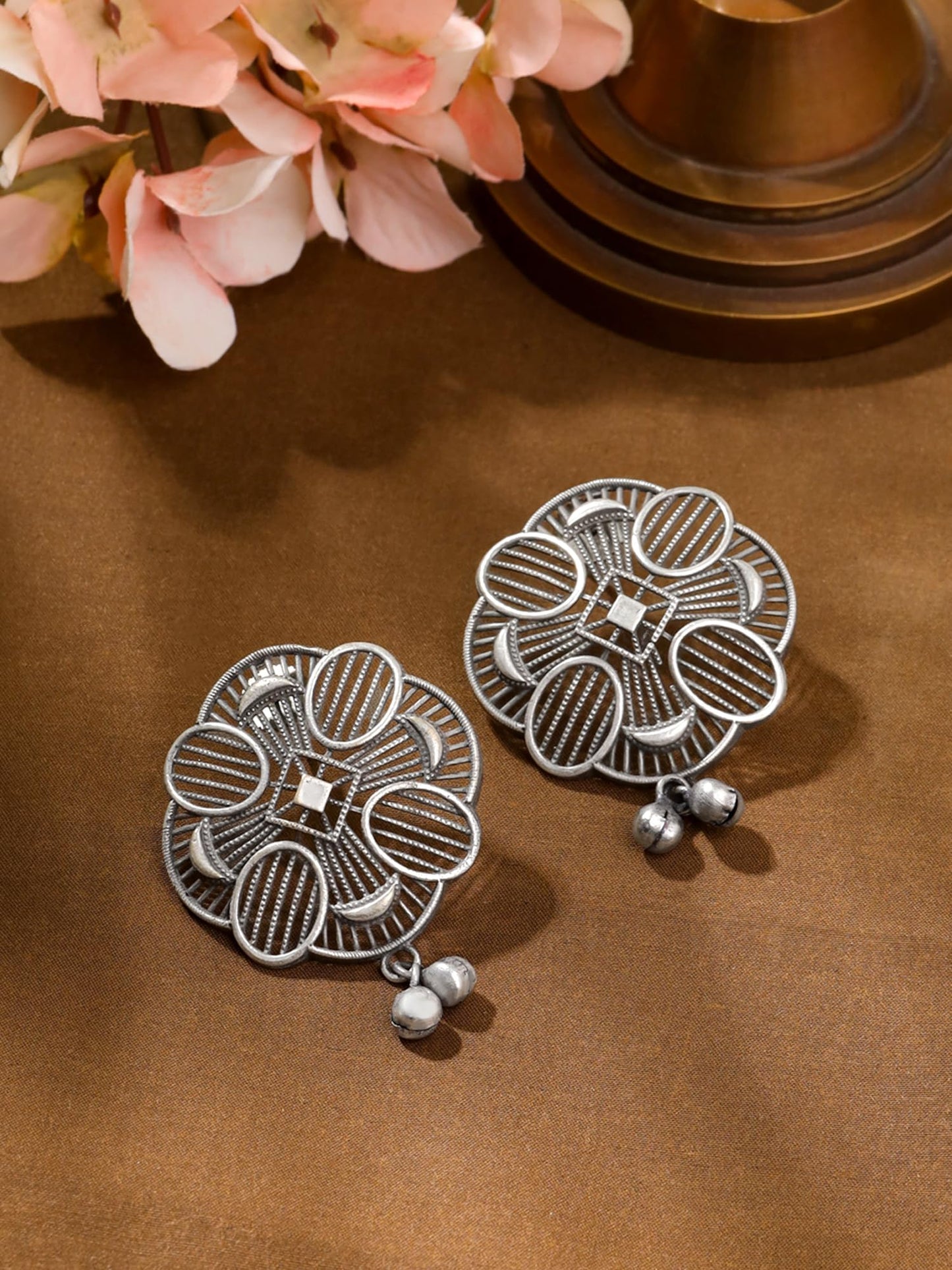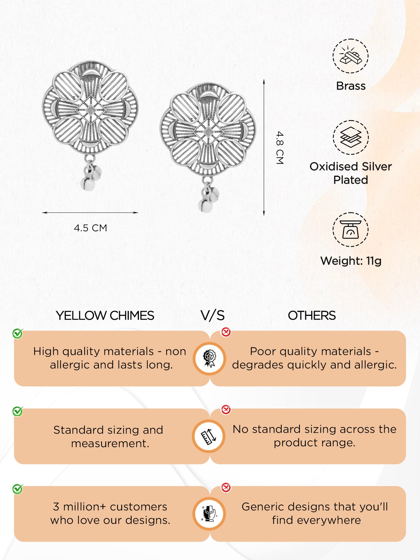 Yellow Chimes Stud Earrings for Women Girls Silver Oxidised Studs Earrings | Traditional Silver Oxidised Plated Stud Earrings | Birthday Gift For Girls Anniversary Gift for Wife