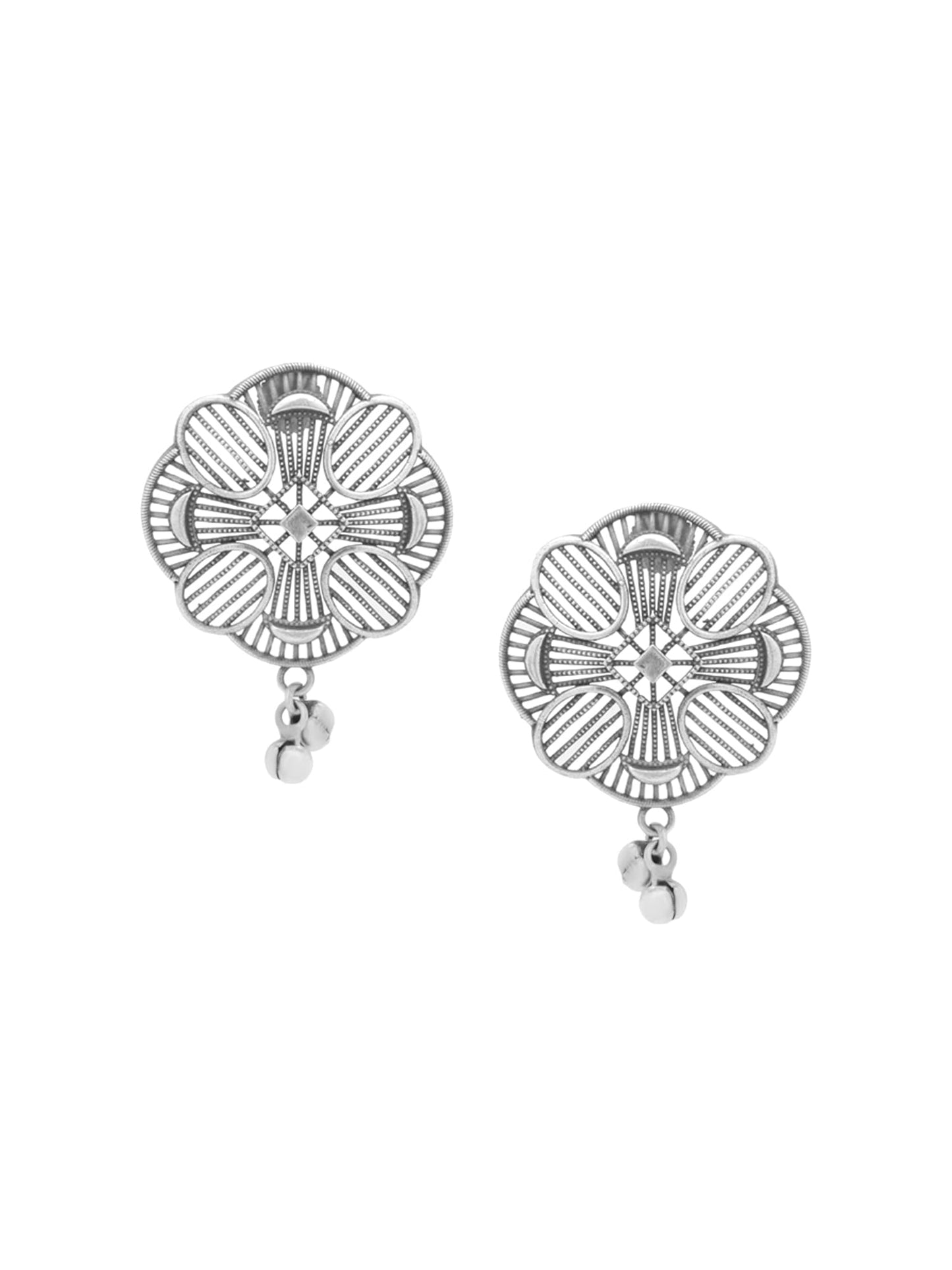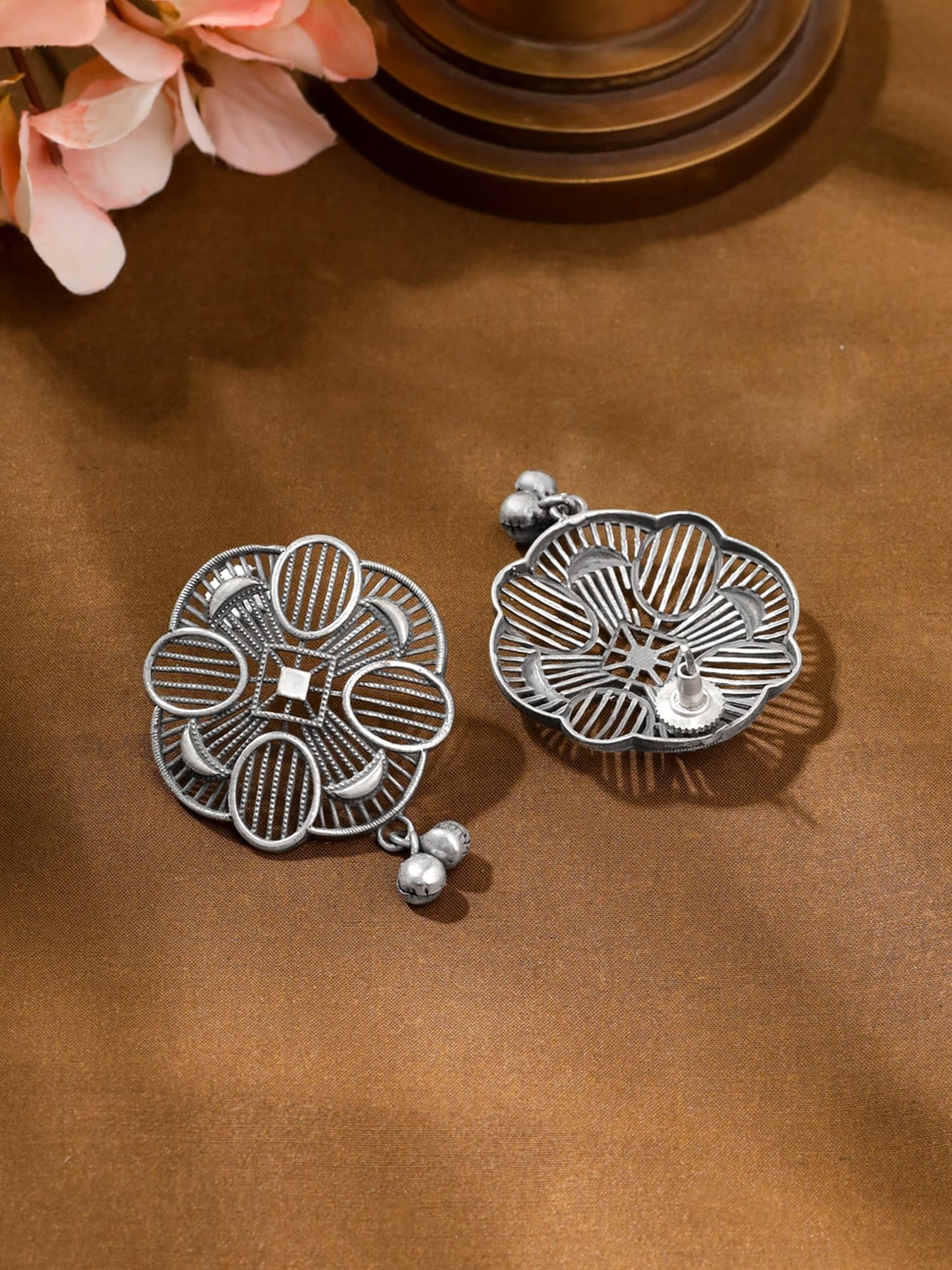 - Versatile Style Upgrade: Enhance any outfit with these beautifully designed silver oxidised stud earrings. Comfortable and affordable, they're perfect for every occasion. Crafted for a one-of-a-kind look, these earrings feature a secure, easy-to-wear push-back clasp.