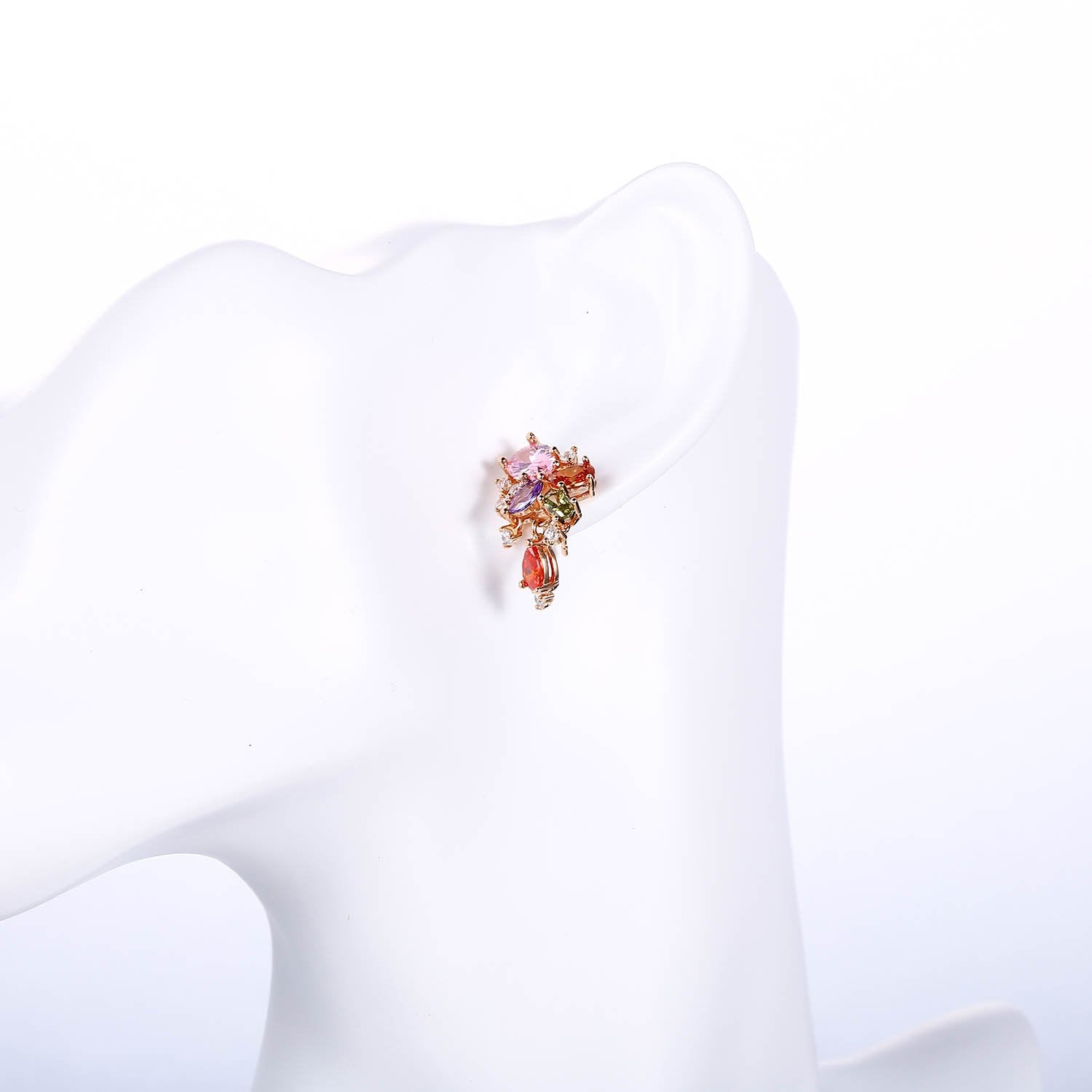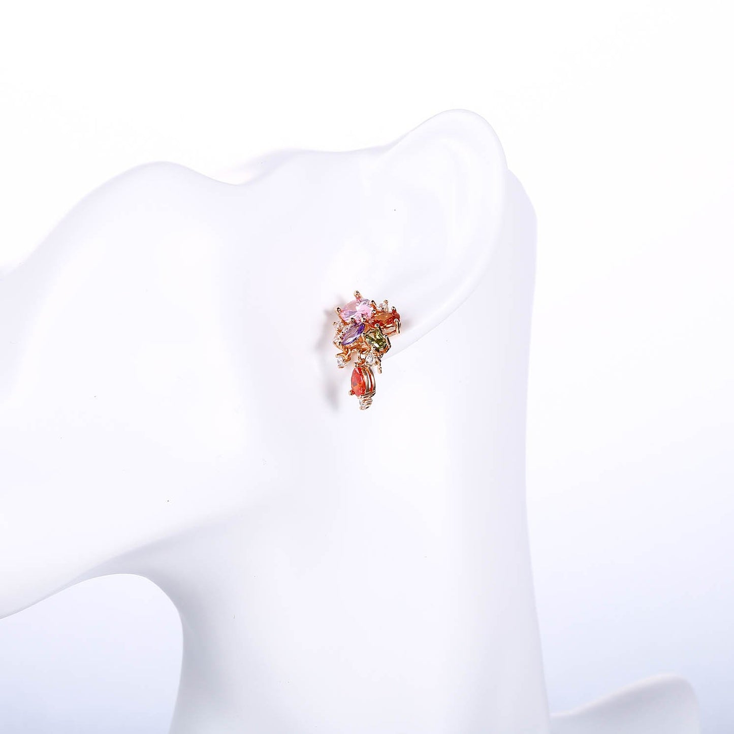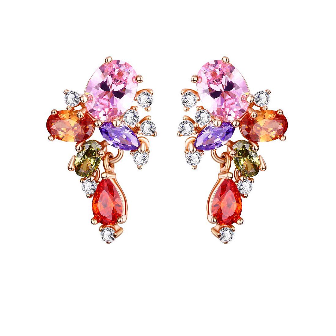 Stud Earrings for Women Multicolor Swiss AAA Zircons Bouquet Earrings 18K Rose Gold Plated Studs Earrings for Women and Girls