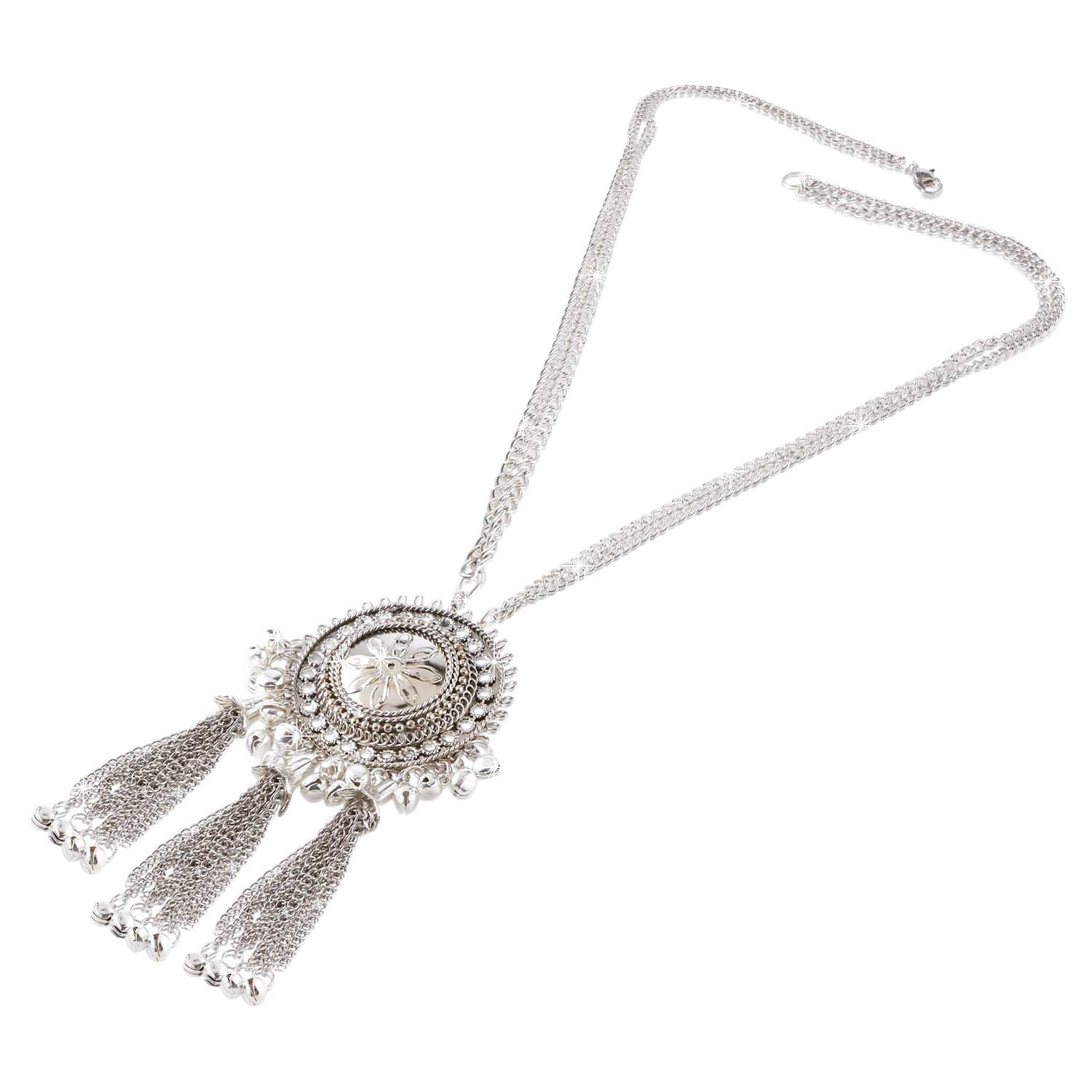 Elevate your accessory game with the Yellow Chimes Stylish Crafted Lotus Theme Silver Necklace Set—where style meets tradition!