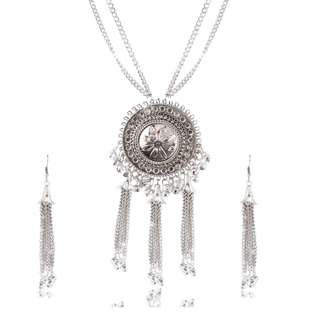 Yellow Chimes Stylish Crafted Lotus Theme Silver Necklace Set with Earrings Oxidized Jewellery Sets for Women and Girls