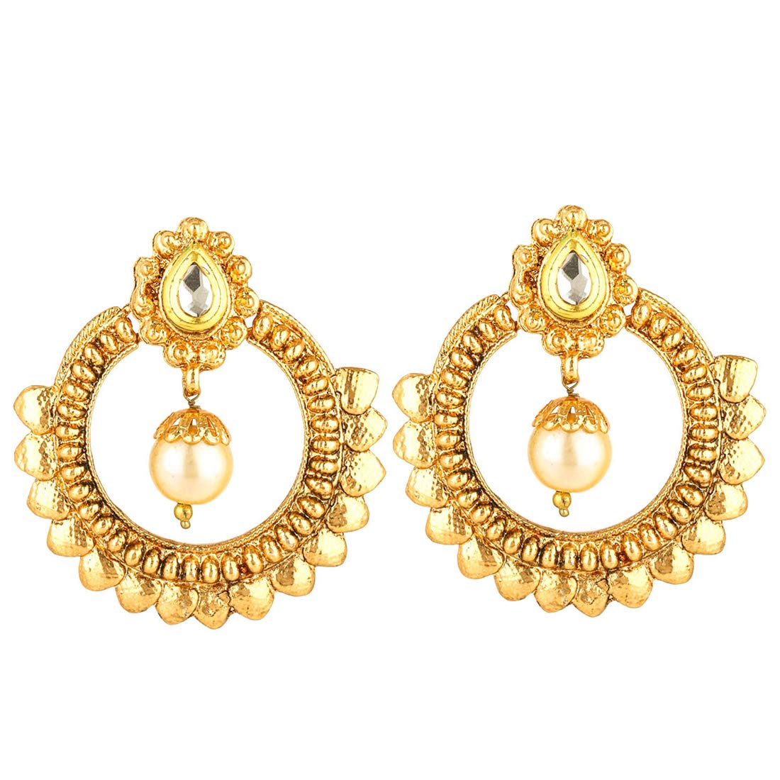 Yellow Chimes Stylish Fancy Traditional Kundan Jadau Chandbali Earrings for Women and Girls