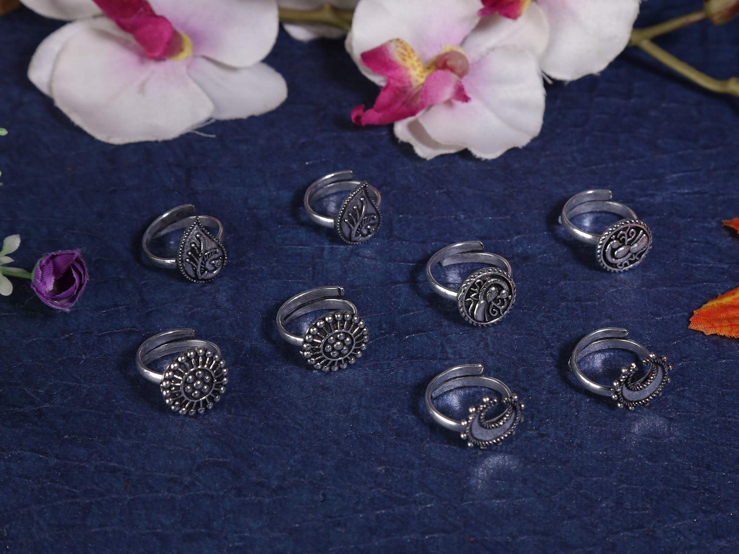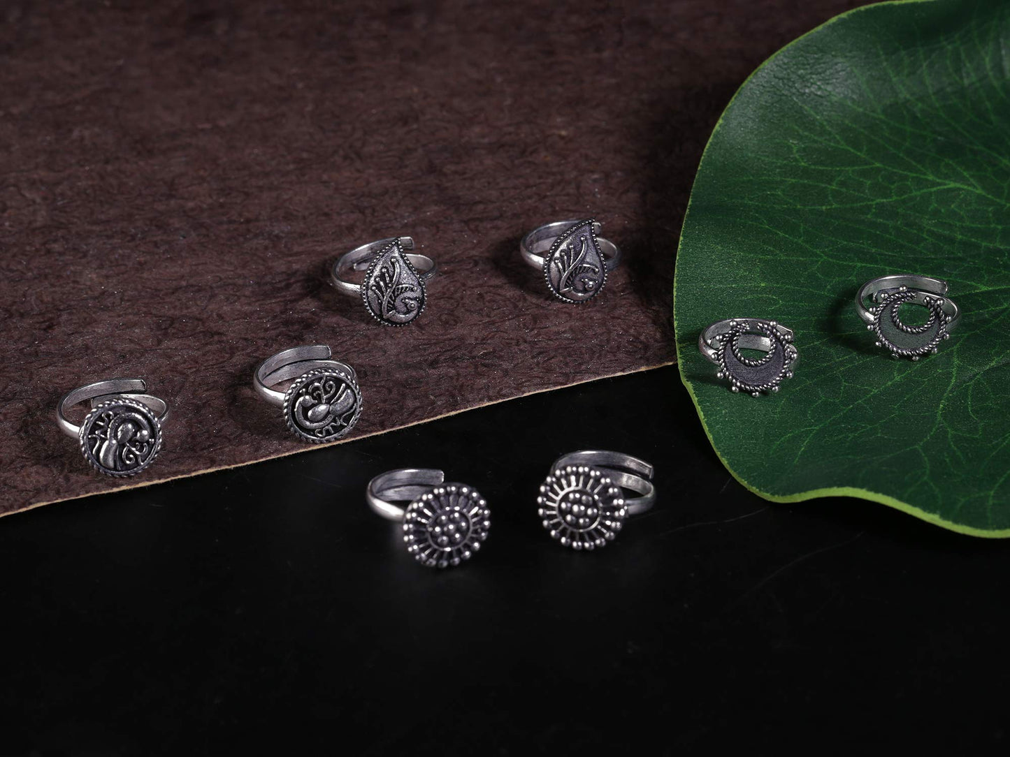 • German Oxidized Silver Designer Toe rings combo of 3 Pairs- gives an Elegant Stylish looks you require for all your Occasions.