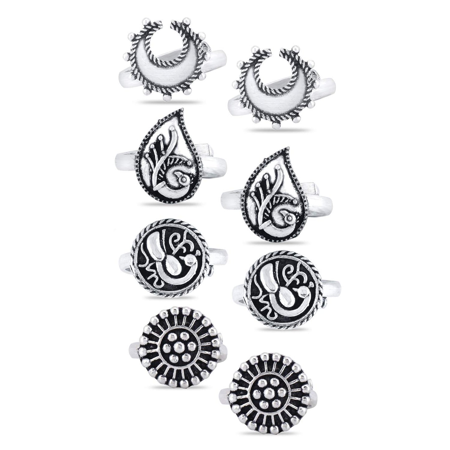 Yellow Chimes Toe Rings Set for Women Silver Oxidised Toe Ring Set 4 Pairs Combo German Silver Adjustable Toe Ring for Women and Girls.