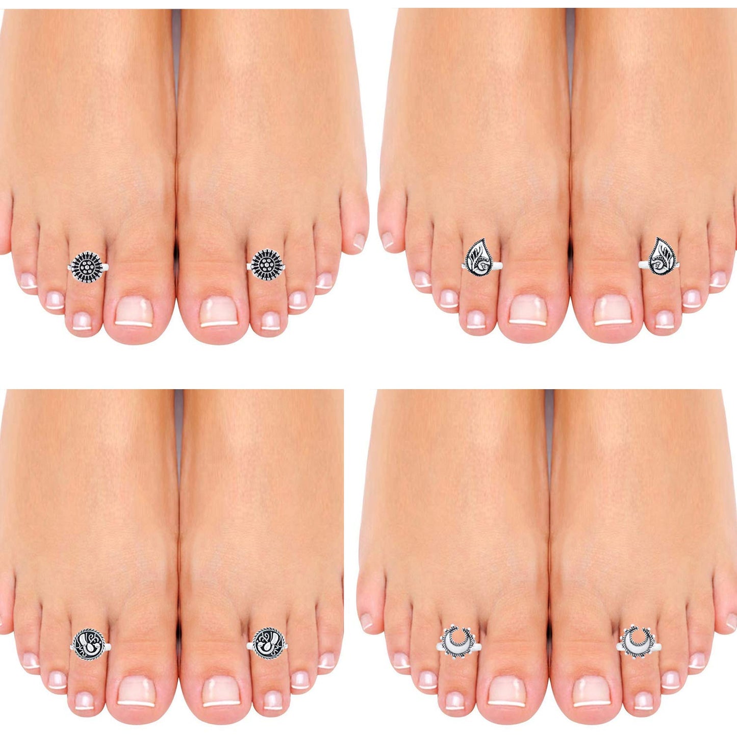 Toe Rings Set for Women Silver Oxidised Toe Ring Set 4 Pairs Combo German Silver Adjustable Toe Ring for Women and Girls.
