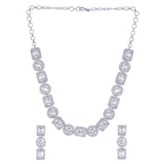 Traditional American Diamond Rhodium Rose Gold Plated AD Necklace Jewellery Set for Women