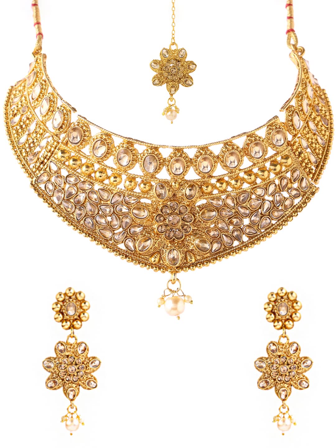 - Trendy Ethnic & Stylish Royal Looks kundan studded jewellery set latest Designer Choker necklace set with earrings and maang tikka bridal jewellery set Stunning and Preciously Suitable Looks for all Kinds of Occasions- Party / Festival / Outings. It's a choice of many Bollywood celebrities and stars too!.
