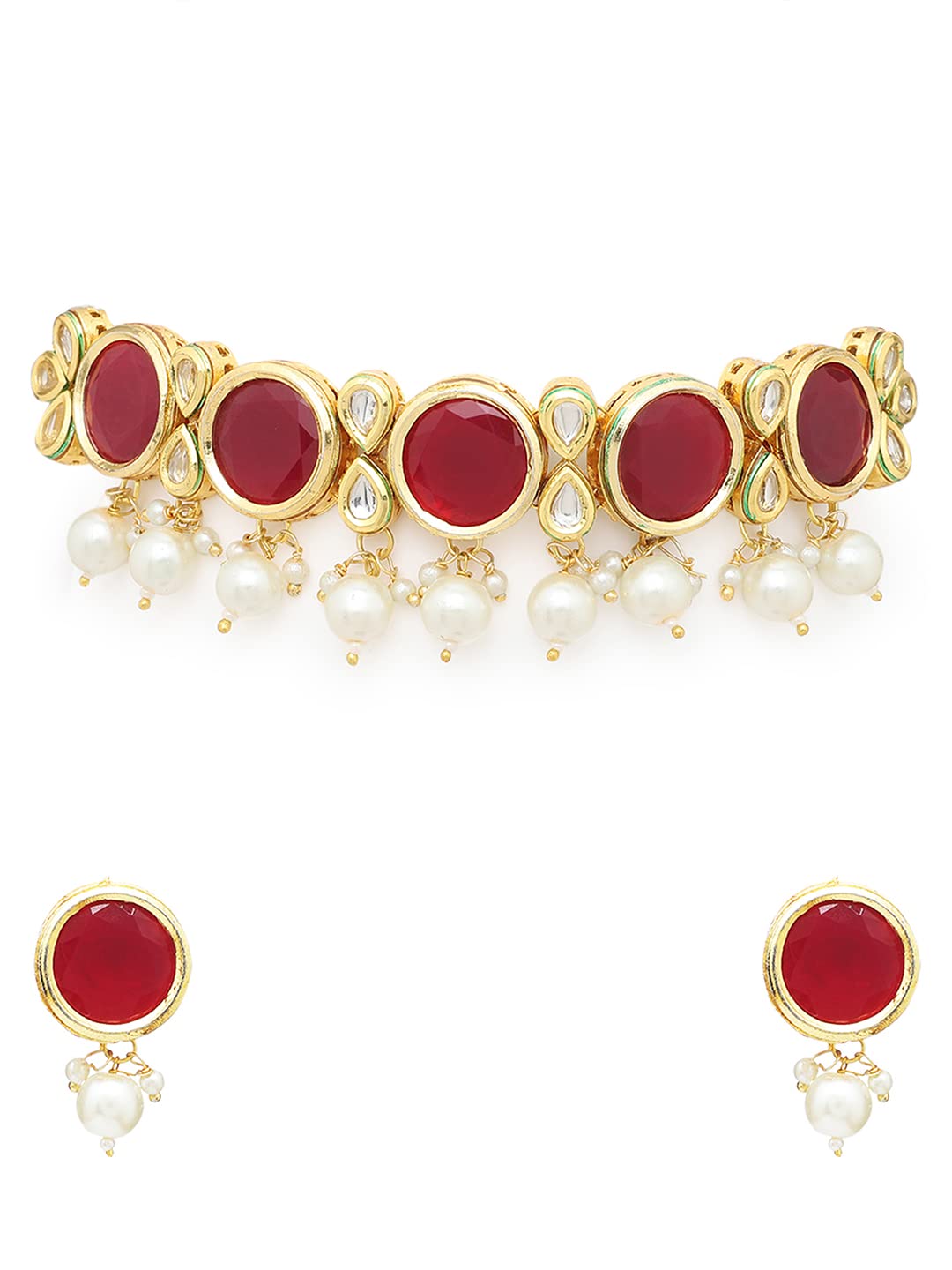 Yellow Chimes Traditional Jewellery Set for Women Ethnic Pink Stone Choker Necklace Set Gold Plated Choker Necklace Set for Women and Girls.