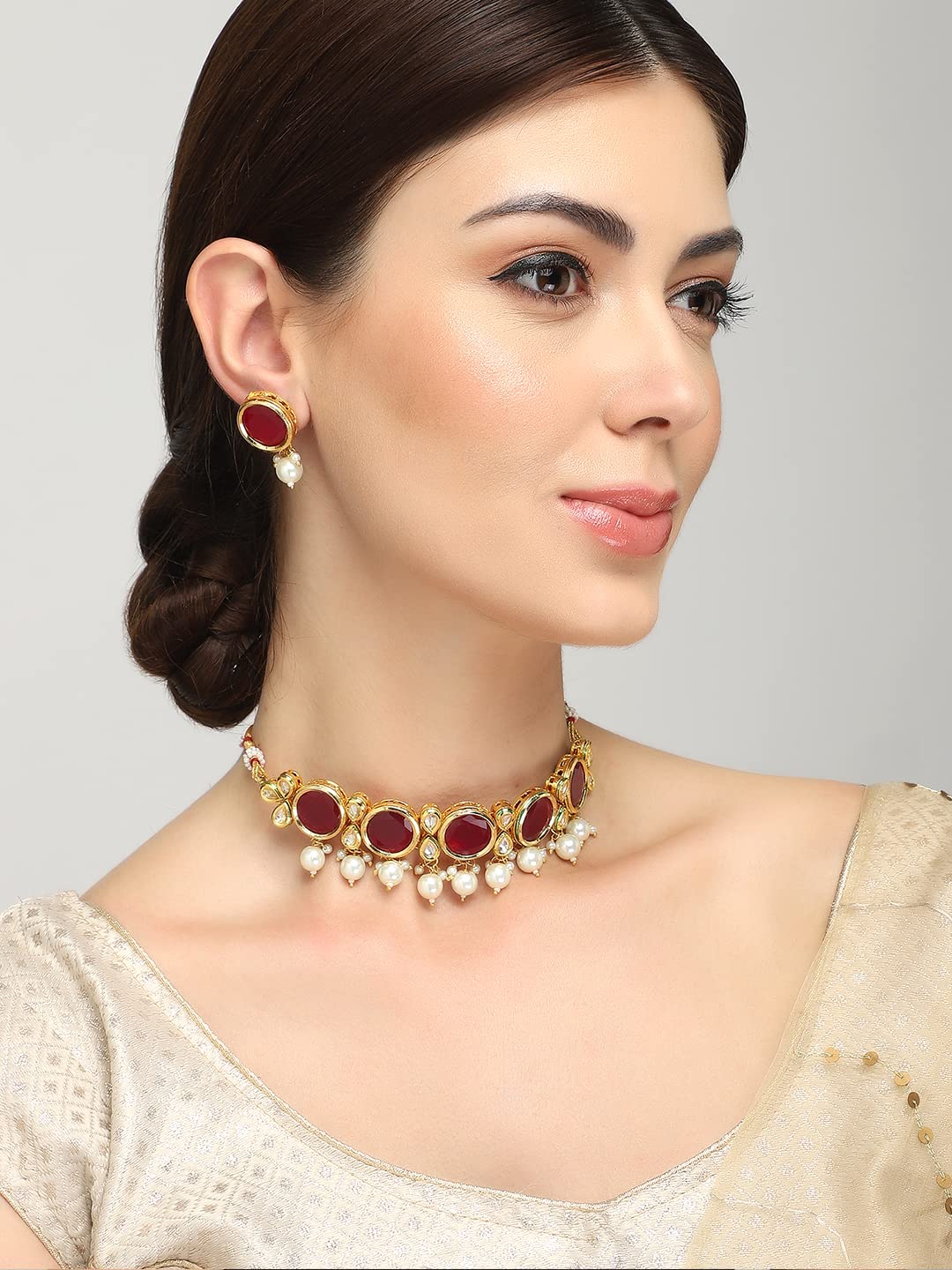 - This neck-hugging stone Necklace set is for those who like to ooze Class and Royalty, and adds an immediate sass to any look. An exclaiming royalty to your dignified looks, this exquisite freshwater/ Faux pearl Neclace Set are sure to steal the spotlight.