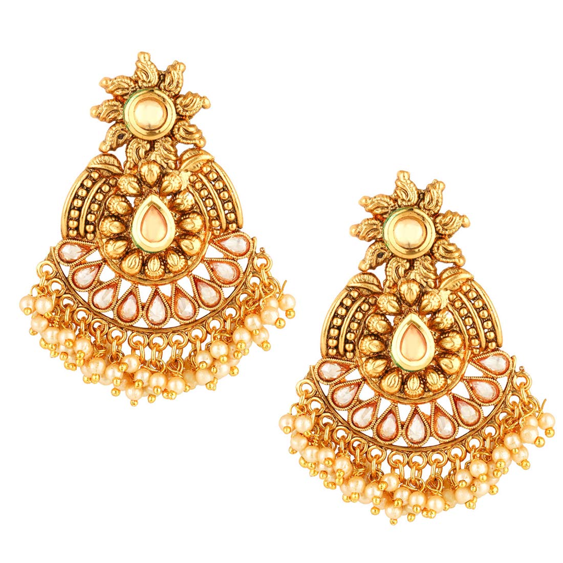 Yellow Chimes Traditional Moti Kundan Jadau Chandbali Earrings for Women and Girls