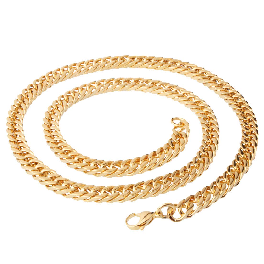 Trendy Classic Stainless Steel Curb Chain Necklace for Men and Boys (24 Inch) (Gold)