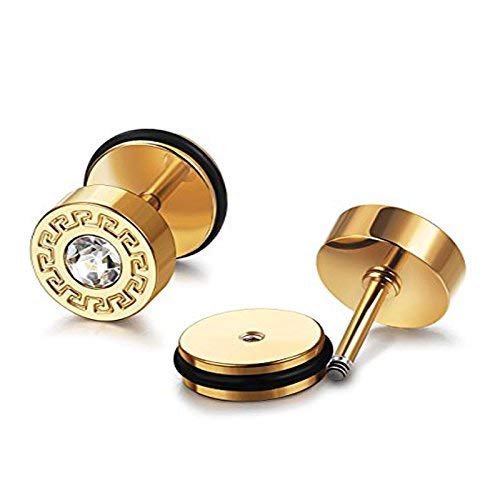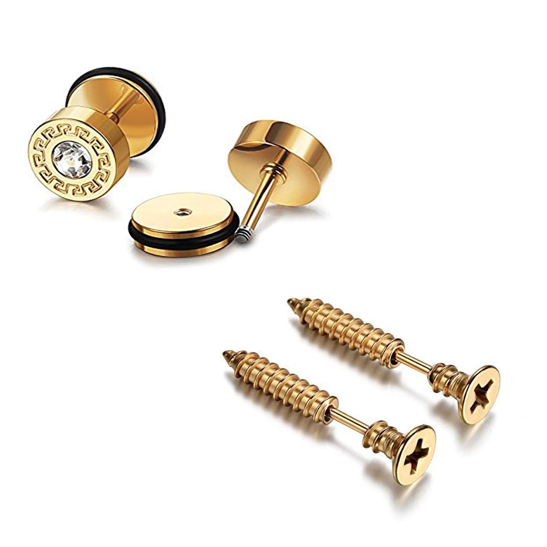 - Combo of 2 Pairs Stylish And Trendy 316L Stainless Steel Studs Earrings for Men Golden Screw Craft & Crystal Stud Earrings. Perfect For all Occasions Trendy Earrings For Men & Boys / Unisex / Girls. Daily / Party / Casual Wear Fashion Jewellery