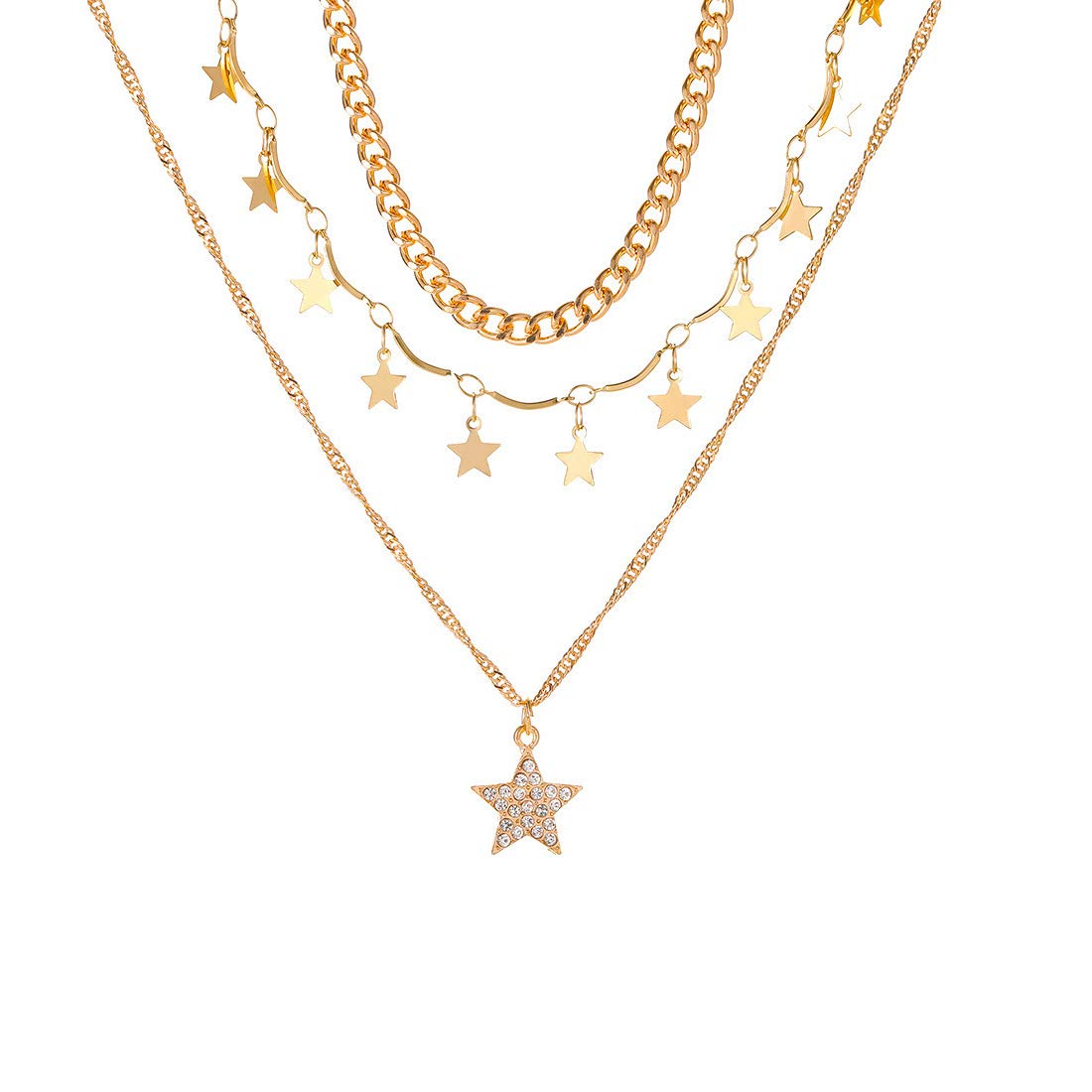 Trendy Fashion Multilayer Gold Toned Star Drop Choker Necklace for Women and Girls