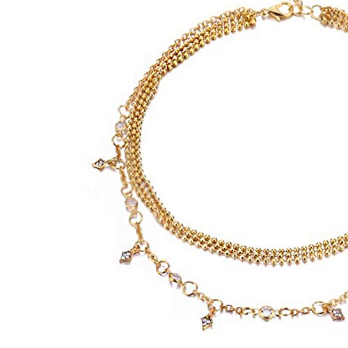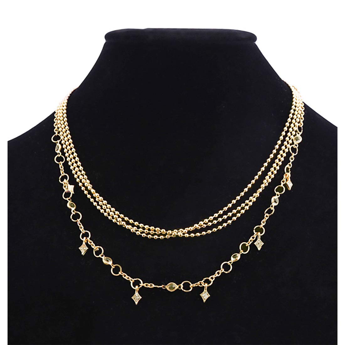 Trendy Fashion Multilayer Gold Toned Crystal Drop Choker Necklace for Women and Girls