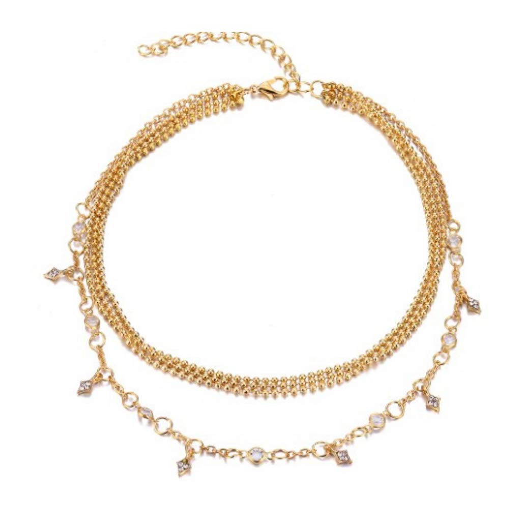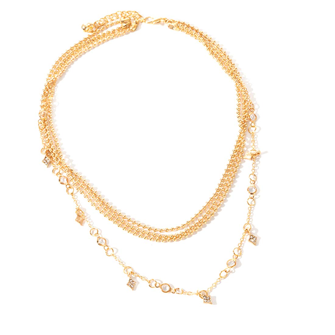 - A Trendy Western Style Gold Plated Multilayered chain with crystal drops beautiful and elegant modern style latest design Choker Necklace giving a nice combination overall, which is nice to wear will go beautifully with any of your attire.