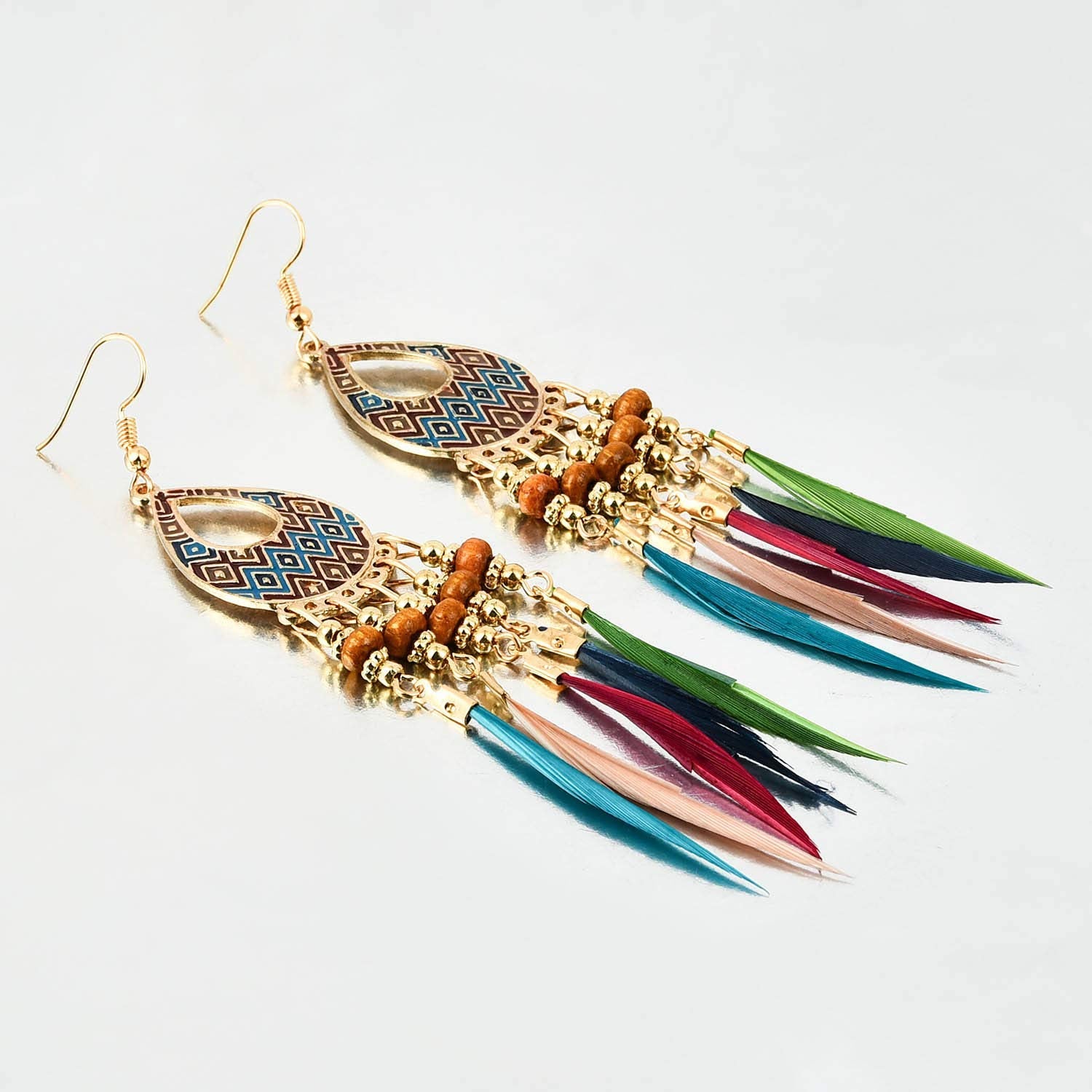 Two Pairs Feather Tassel Earrings For Women and Girls