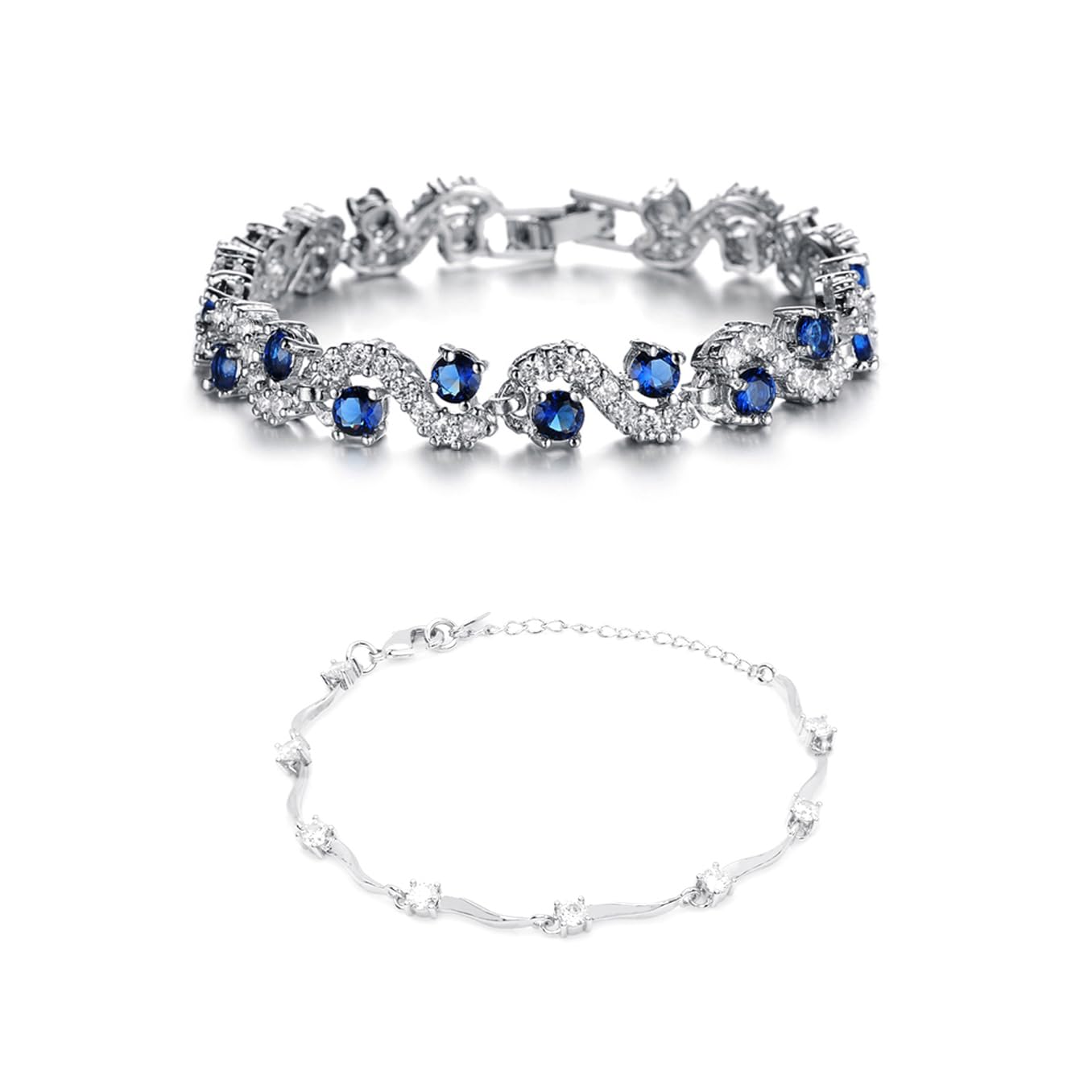 - Elegant Design: Each bracelet boasts an interlinked chain crafted from silver-toned alloy, adorned with shimmering white crystals that catch the light beautifully.
