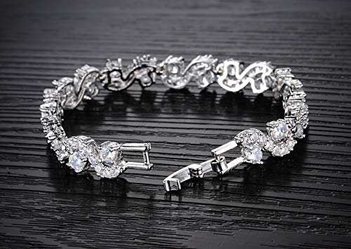 Women Crystal Bracelets | Silver Toned Bracelets for Women | CZ Crystals Bracelet For Women | Birthday Gift for Girls & Women Anniversary Gift for Wife