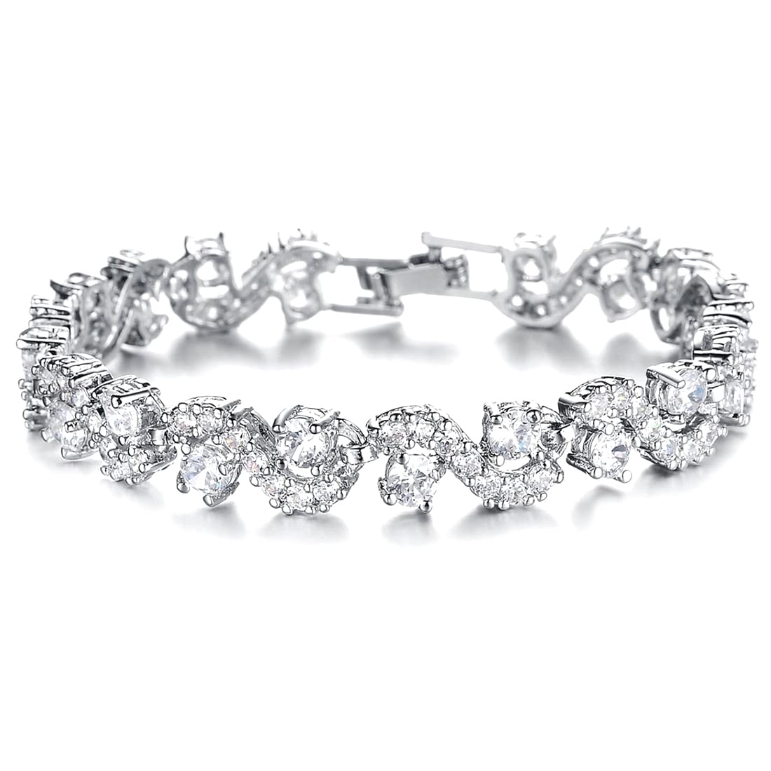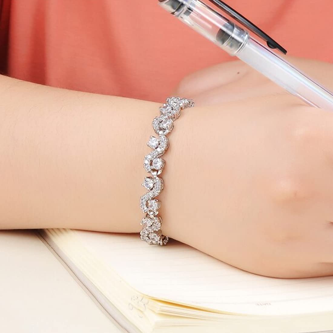 - Elegant Sparkling White Crystal Stoned Silver plated Smooth Finished bracelet for women. Our Product is perfect for valentines Anniversary Birthday gift for girlfriend and Wife.