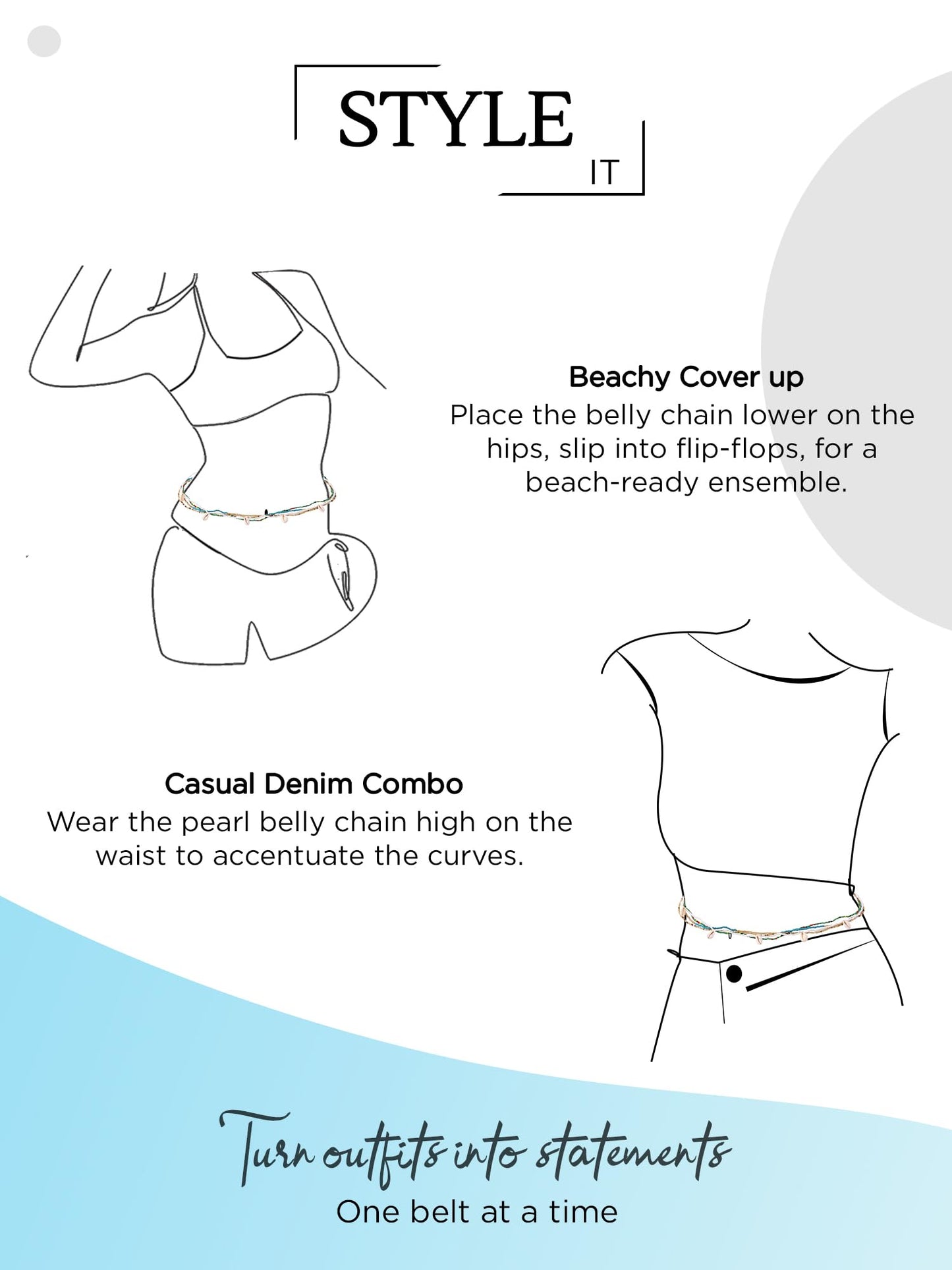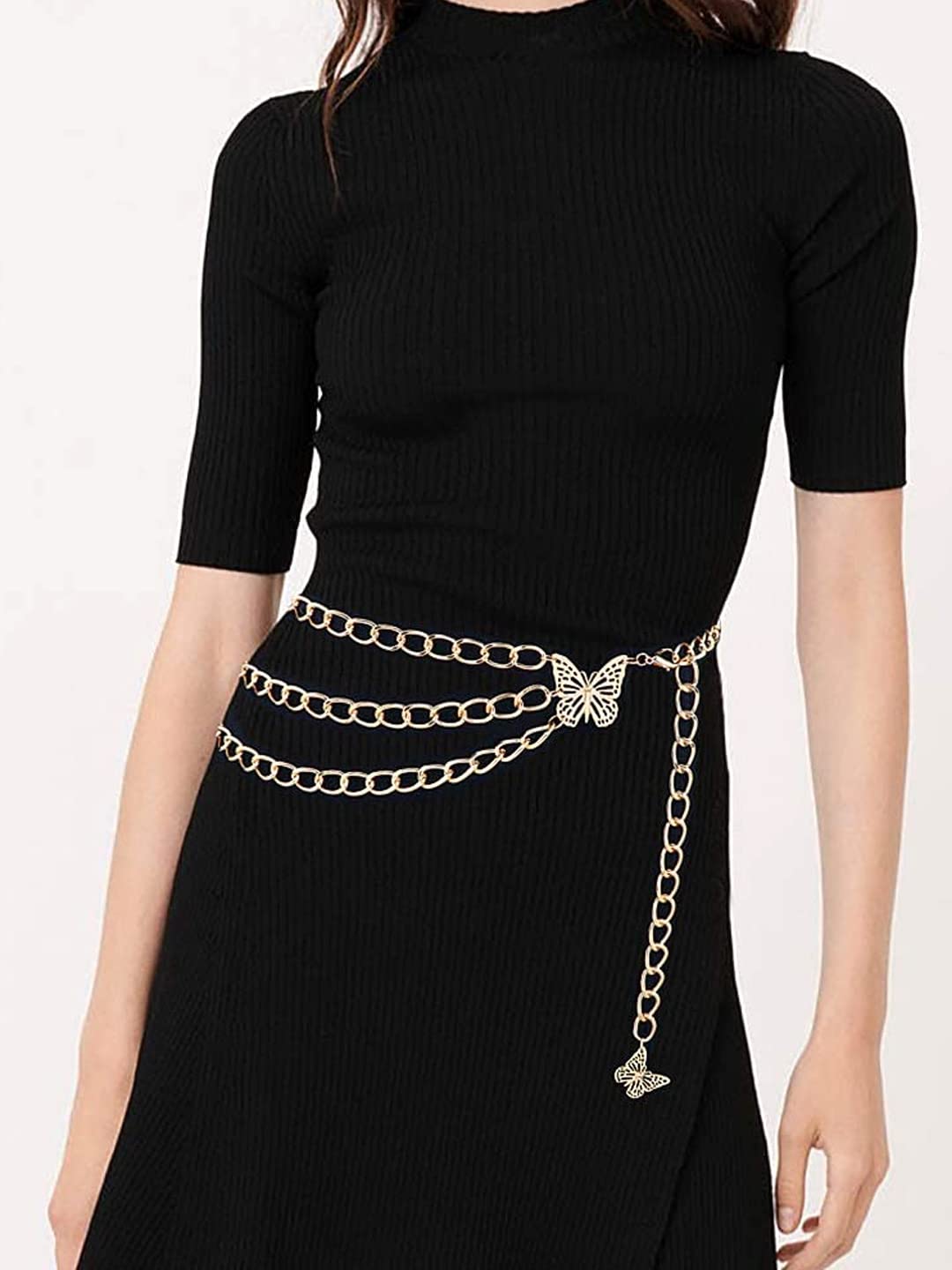 - Usage- The belly body chain can be worn alone or combined with other jewelry,like all kinds of belly button rings. It matches with your shorts, crop top, jeans, leather pant, dress and so on. You can also wear it as a wrap chain necklace.