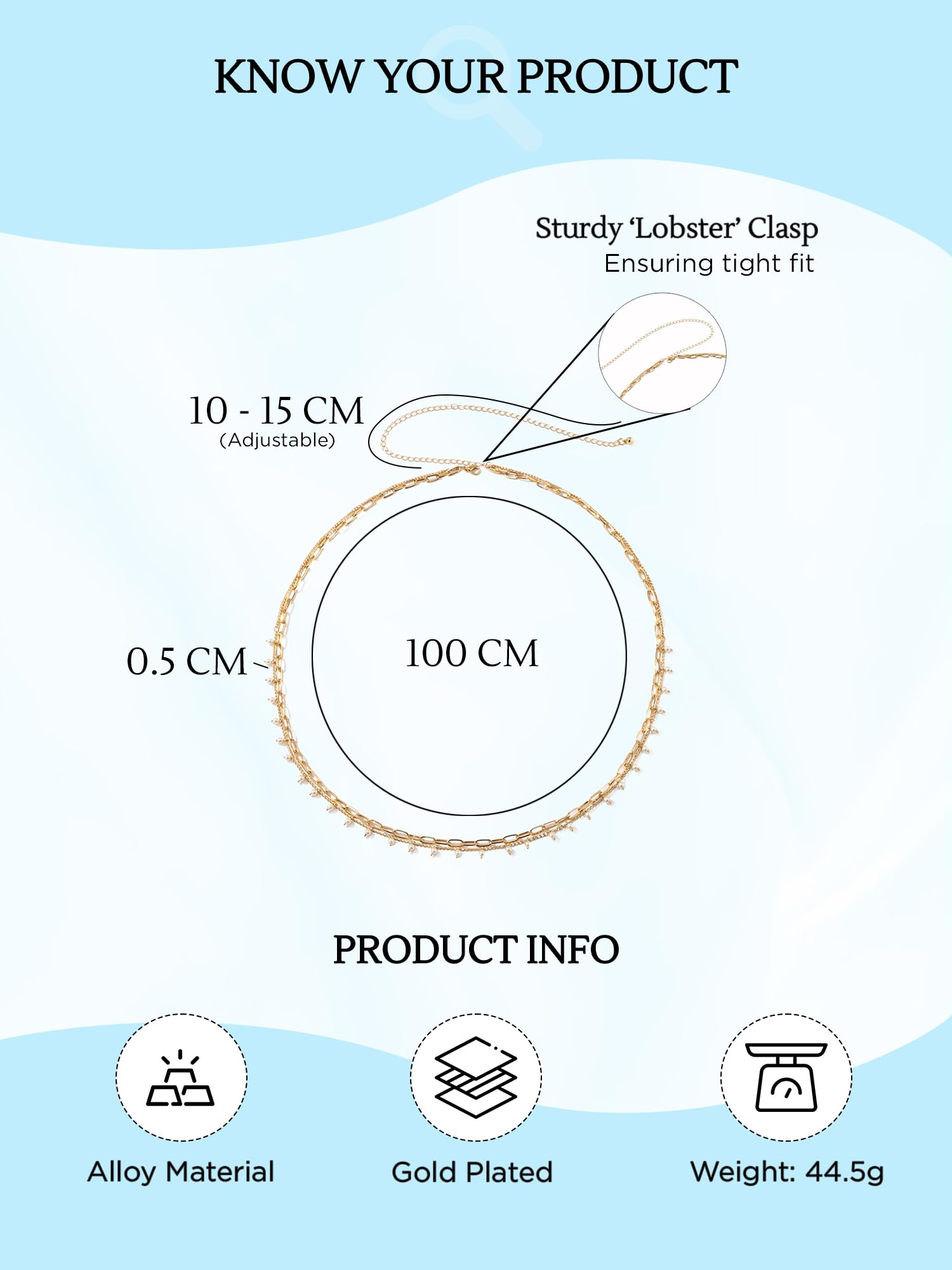 Yellow Chimes Waist Chain for Women Pearl Studded Dual Layer Waist Chain for Women and Girls Sexy Hot Waist Chain- Delicate body chain lets the hip and waist be the most eye-catching part. Fashionable & Elegant, it adds the sensuous looks to your favourite attire making you to be more charming and eye catching. Size Details: Waist Chain Length - 75CM. Weight - 44.5GM Usage- The belly body chain can be worn alone or combined with other jewelry,like all kinds of belly button rings. It matches with your shorts, crop top, jeans, leather pant, dress and so on. You can also wear it as a wrap chain necklace. Size: Waist Chain - 115CM Gift for women! - ideal valentine, birthday, anniversary gift for someone you ❤ love ❤. with our packaging box, you do not need to opt-in for any additional gift packaging. the product comes in a beautiful elegant ready-to-gift box