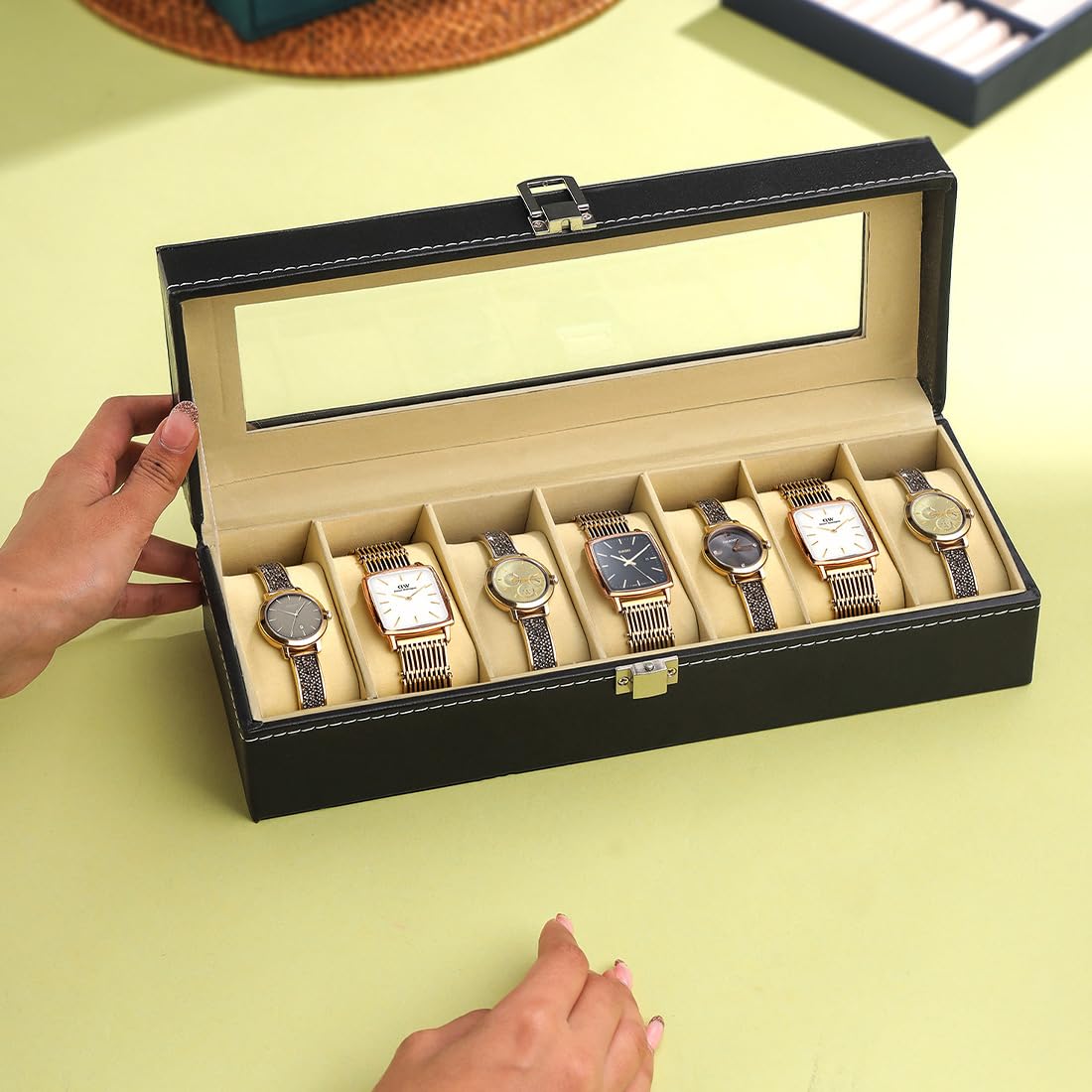 • Spacious Design: With 6 thoughtfully designed slots, this watch display case accommodates various watch styles, offering ample space for your growing collection.