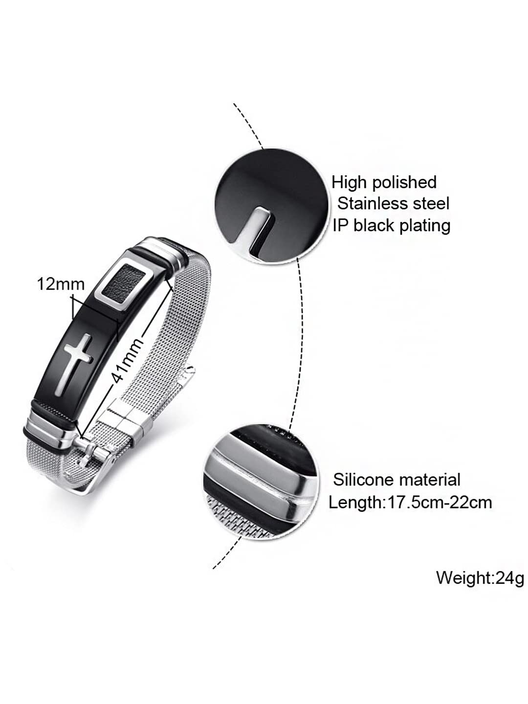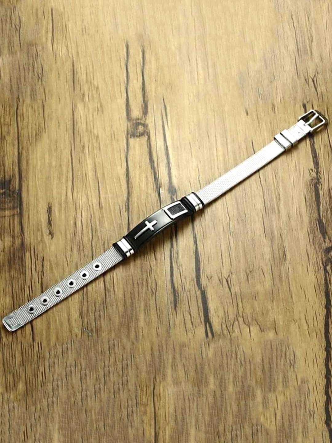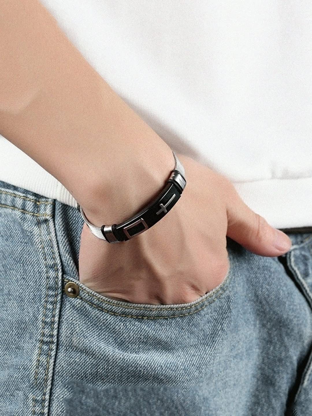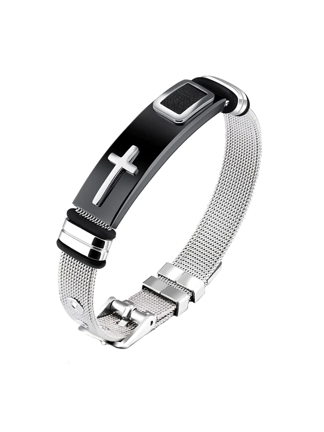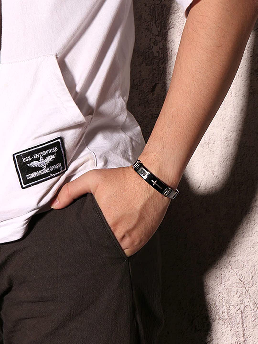 Western Style Cross Design Printed Causal Wear Wristband Opening Bracelet for Men and Boys (Design 3)