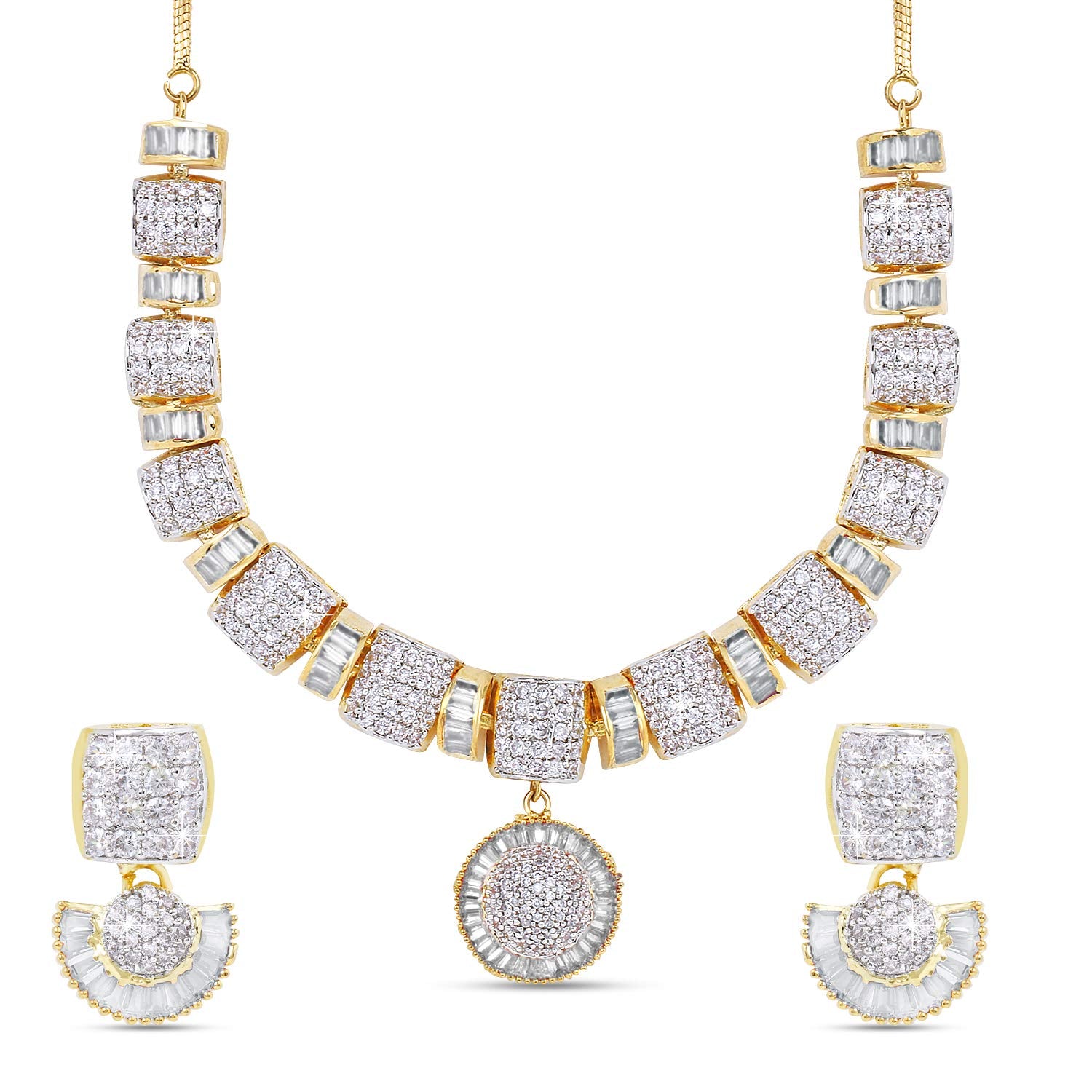 White AD/American Diamond Studded 18k Gold Plated Designer Handcrafted Necklace Jewellery Set for Women & Girls