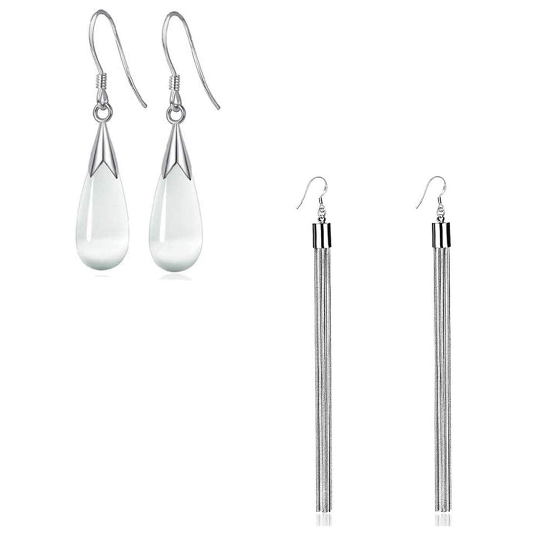 White Opal Western Style Long Chains Thread Long Dangle Drop Earrings Combo for Women and Girls