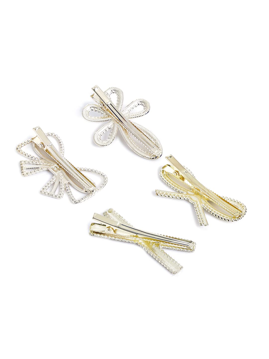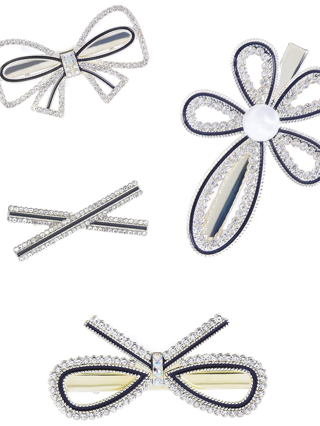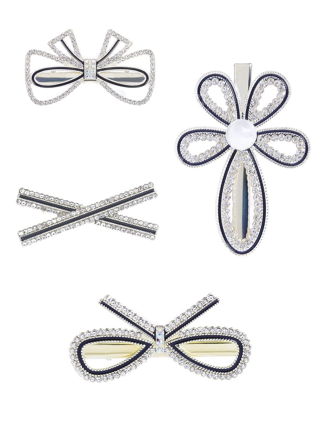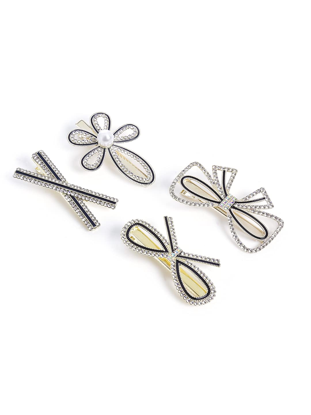 4 Pcs Crystal Studded Stylish Hair Clips Barratte Clips for Women Girls (Pack of 4), White, Medium (YCHACL-WM007-WH)