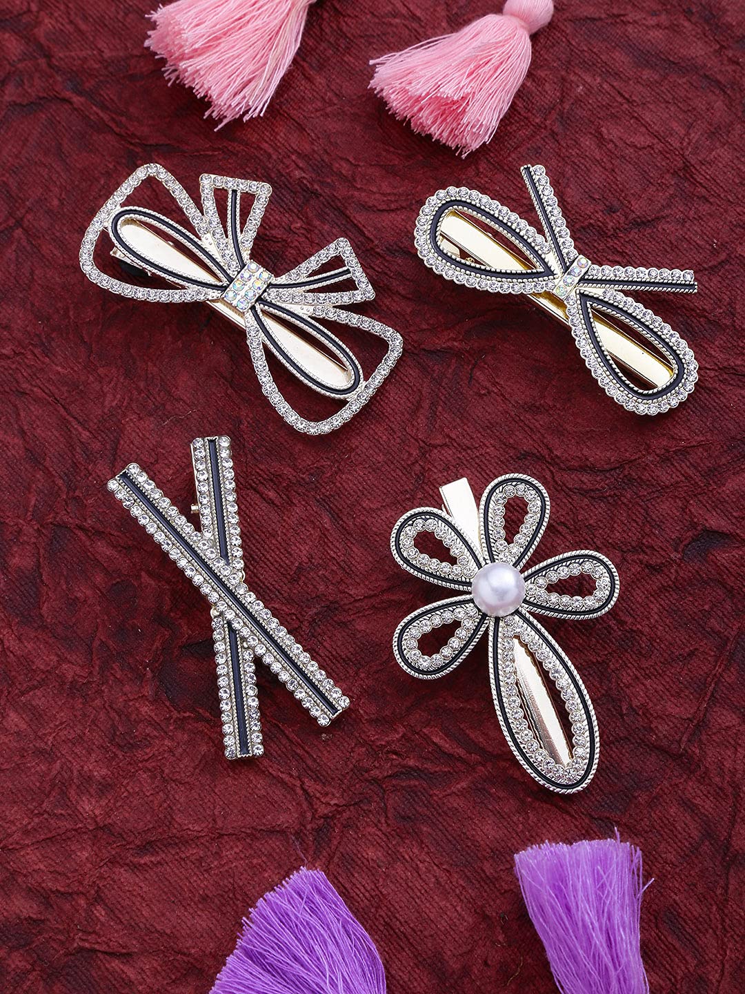 Transform your hairstyle and express your unique style with the Yellow Chimes Crystal Studded Hair Clips today!