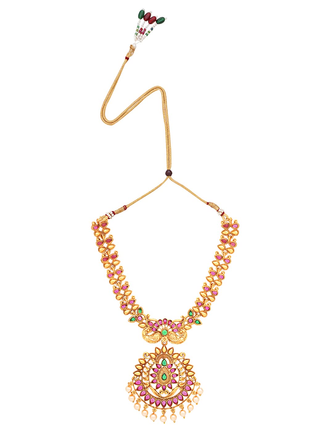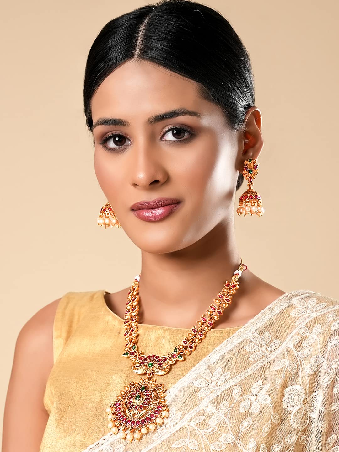 Yellow Chimes Women's Temple Traditional Gold Plated Studded Stone Antique Jewellery Necklace Set