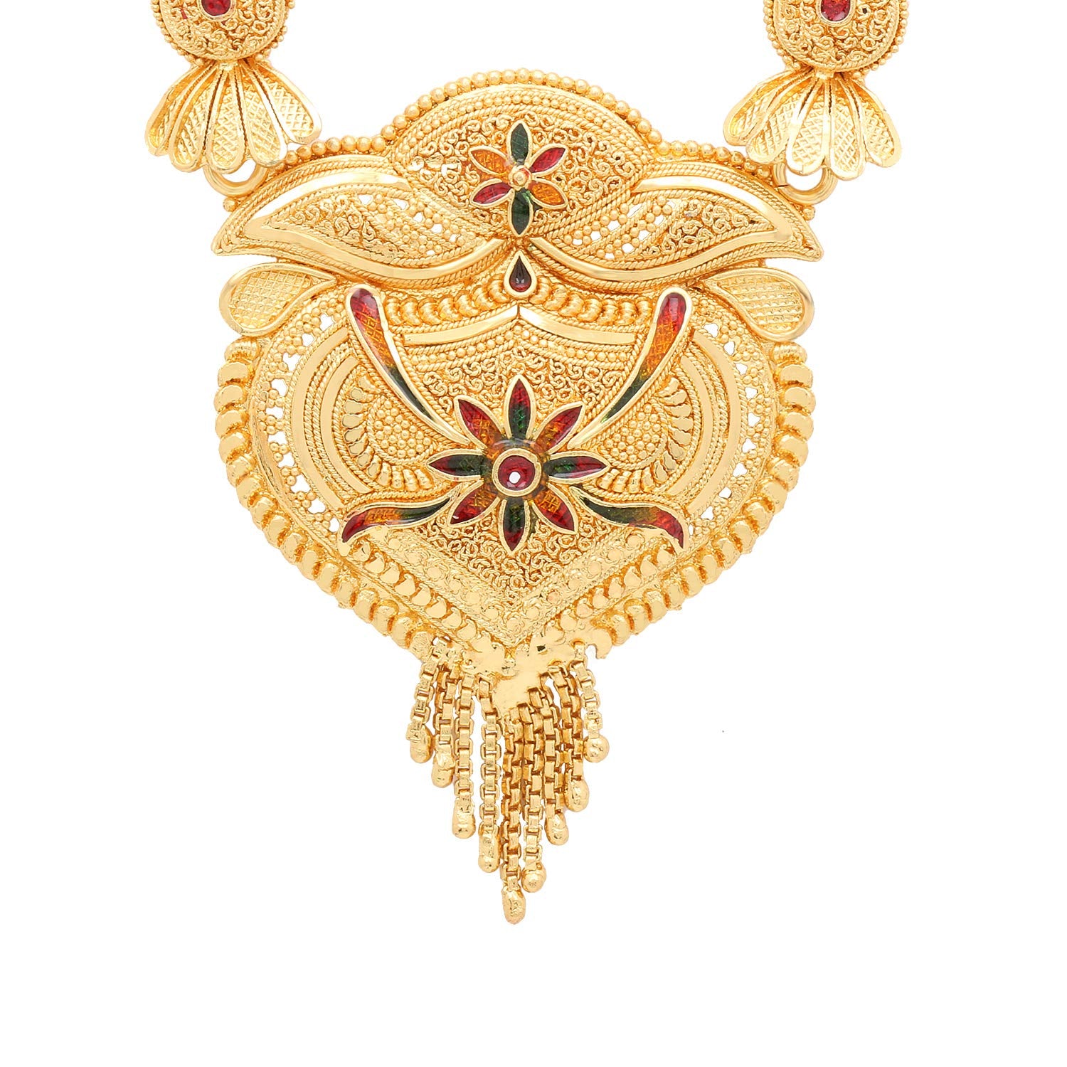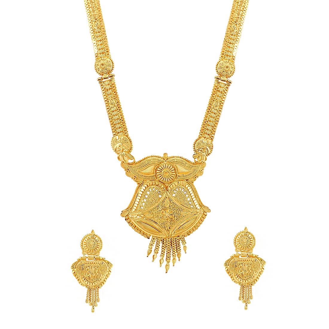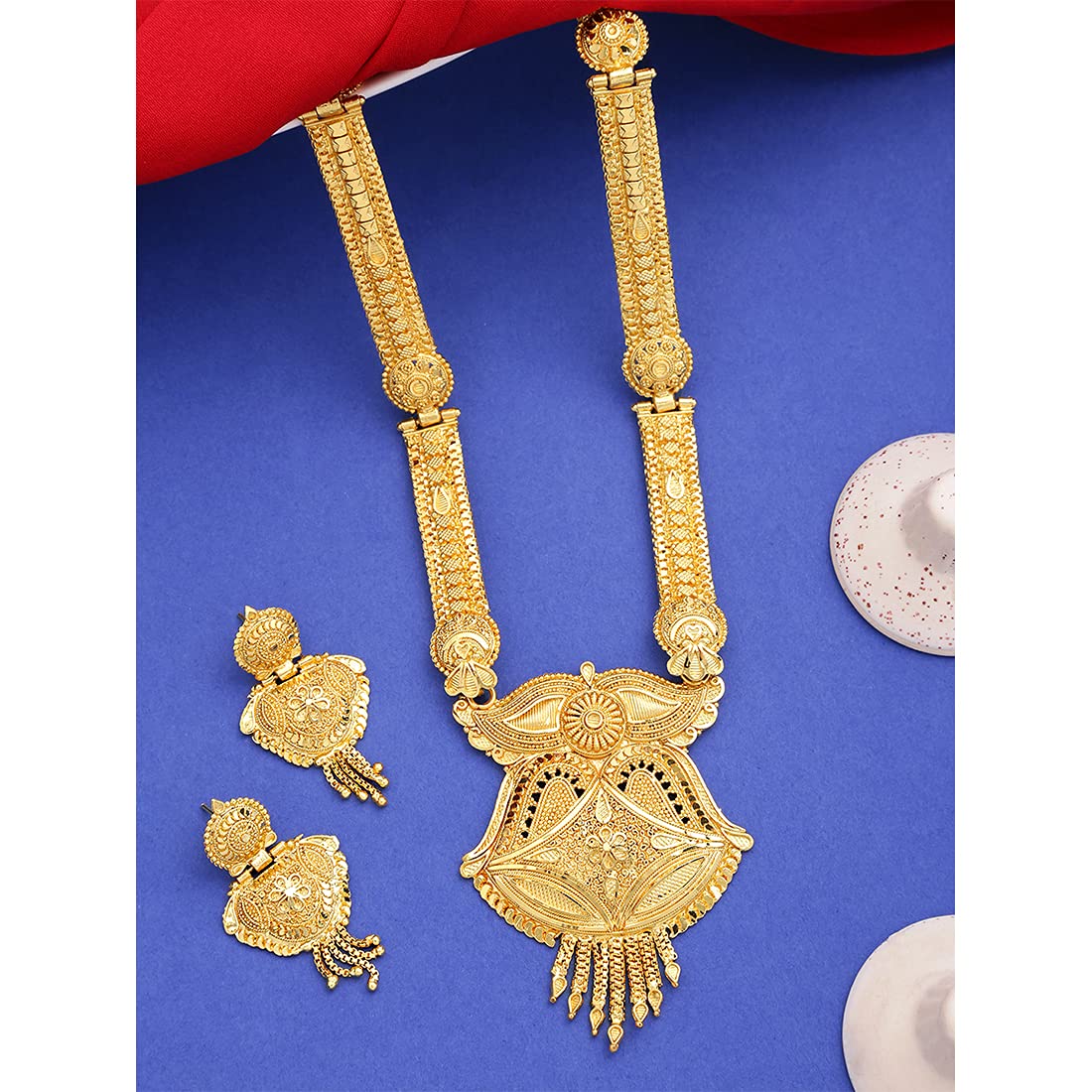 Yellow Chimes Women's Traditional Gold Plated Necklace Set One Gram Gold Long Haram Jewellery Set