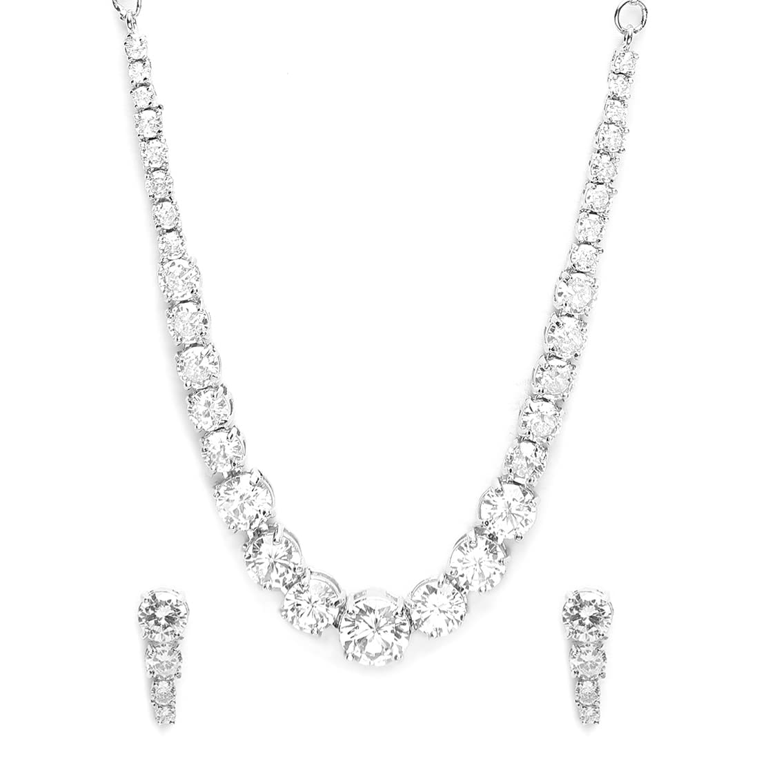 Yellow Chimes Women's Traditional Green American Diamond Rhodium Plated AD Necklace Set